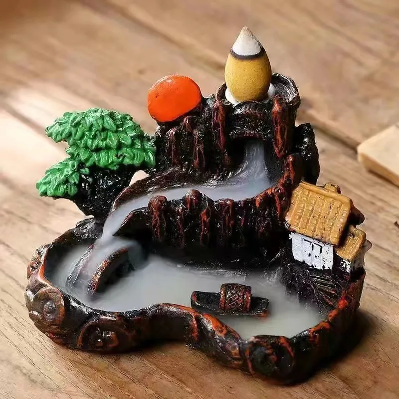 Fashionable Design: Our reflow incense burner is made of environmentally friendly resin, hand-carved, and its design is novel and unique. When used, it produces smoke that surrounds the incense burner like waterfalls and clouds.